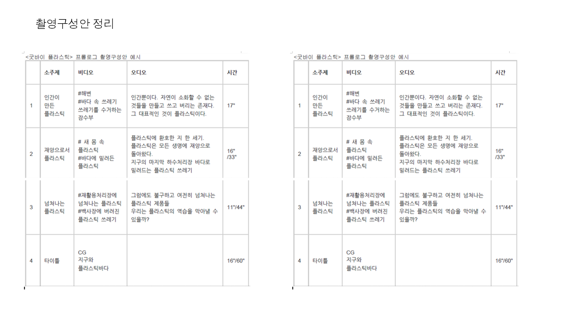 영상의 제목이나 프로젝트 이름 (예: [카페 이름] 감성 브이로그, 나만의 아지트 카페 탐방)